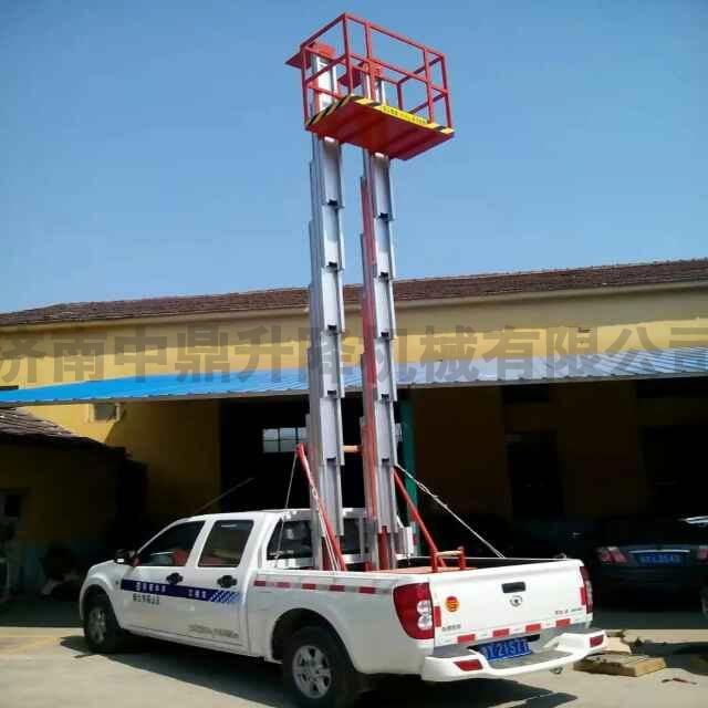 車載式鋁合金升降機產(chǎn)品介紹:把鋁合金式升降機安裝在汽車上的高空作業(yè)設備。適用場所:市政建設維護,路燈照明,公路設施維護,工程搶修,園林修車等。